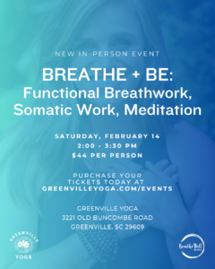 REGISTER HERE: https://greenvilleyoga.com/events/breathe-be-functional-breathwork-somatic-work-meditation